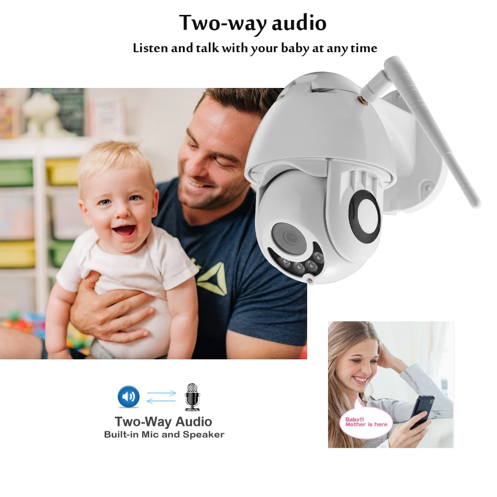 BEST QUALITY Mini WIFI Camera Outdoor 3.6mm PTZ IP Camera 1080p Speed Dome CCTV Security Two-way Audio SD Card C