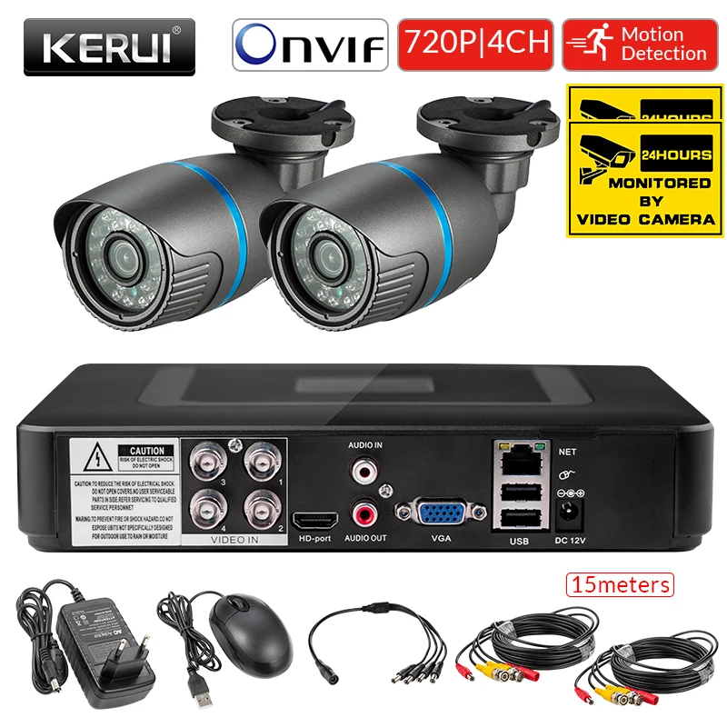 4CH CCTV Camera wifi 720p 2PCS 1MP DVR Weatherproof Outdoor Security System day night vision Video