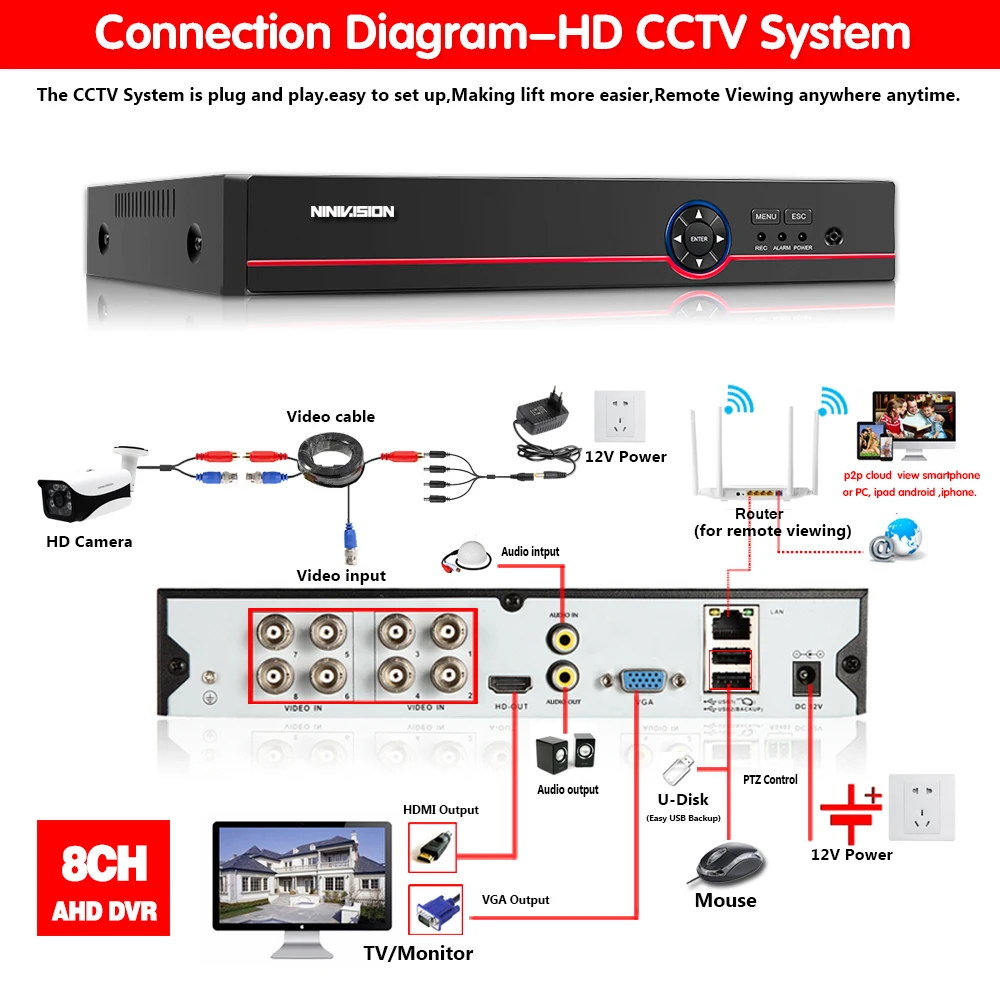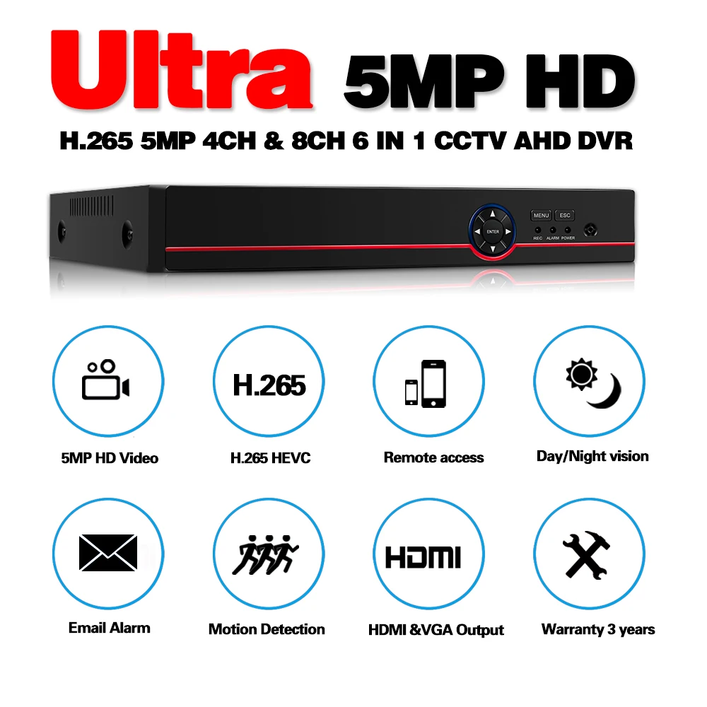 HIGH QUALITY 6 in 1 4CH 8CH 5MP 4MP 1080P AHD DVR Surveillance Security CCTV Recorder 3G WIFI Hybrid DVR NVR For