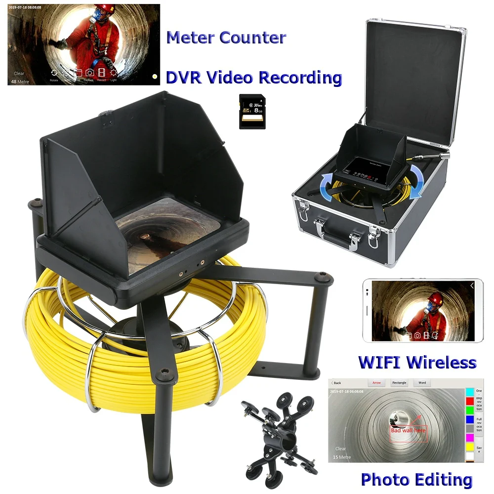 Review 10M / 20 M / 30 M / 40 M / 50 M inspection of industrial video pipes HD 1080P camera with meter / D