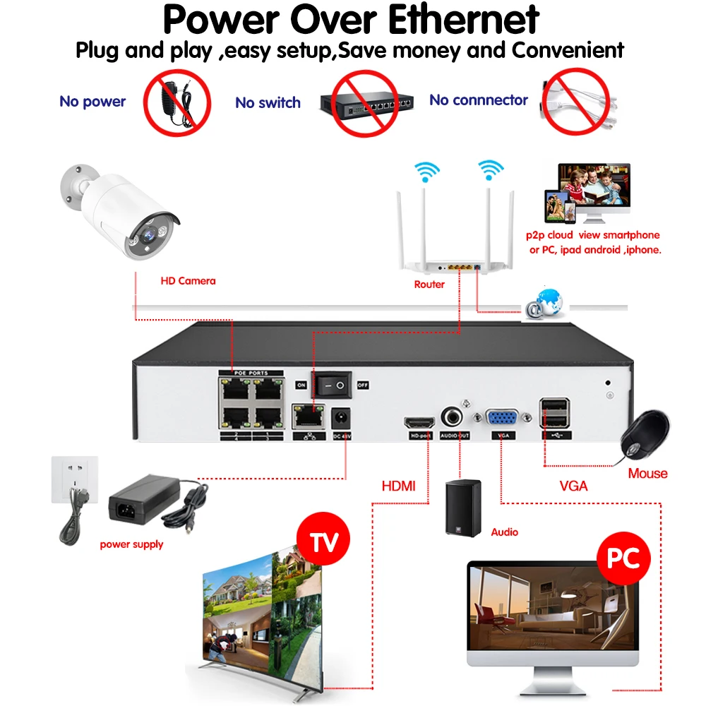 BEST HKIXDISTE 4CH H.265 CCTV NVR 48V PoE 4 Ch*5MP/ 8 Channel*4MP IP Camera Surveillance CCTV Network Vi