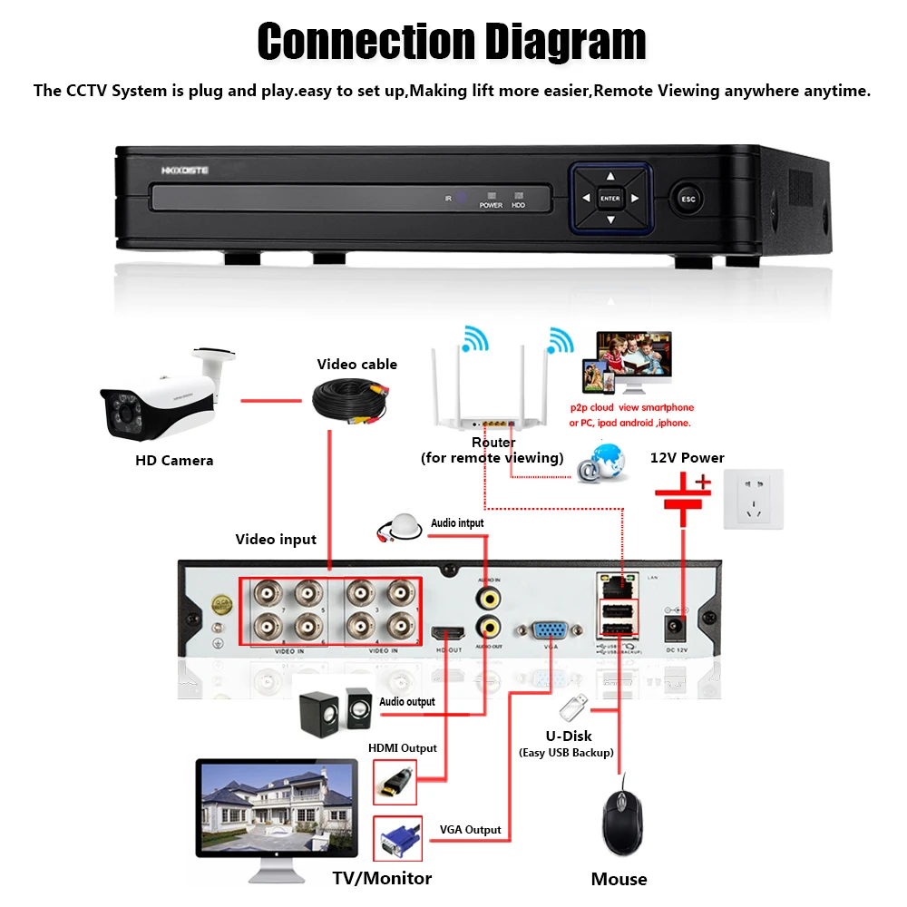 4CH 8CH 5MP Super HD DVR AHD Digital Audio Video Recorder For 5MP/4MP/1080P Camera POE HDMI ONVIF H