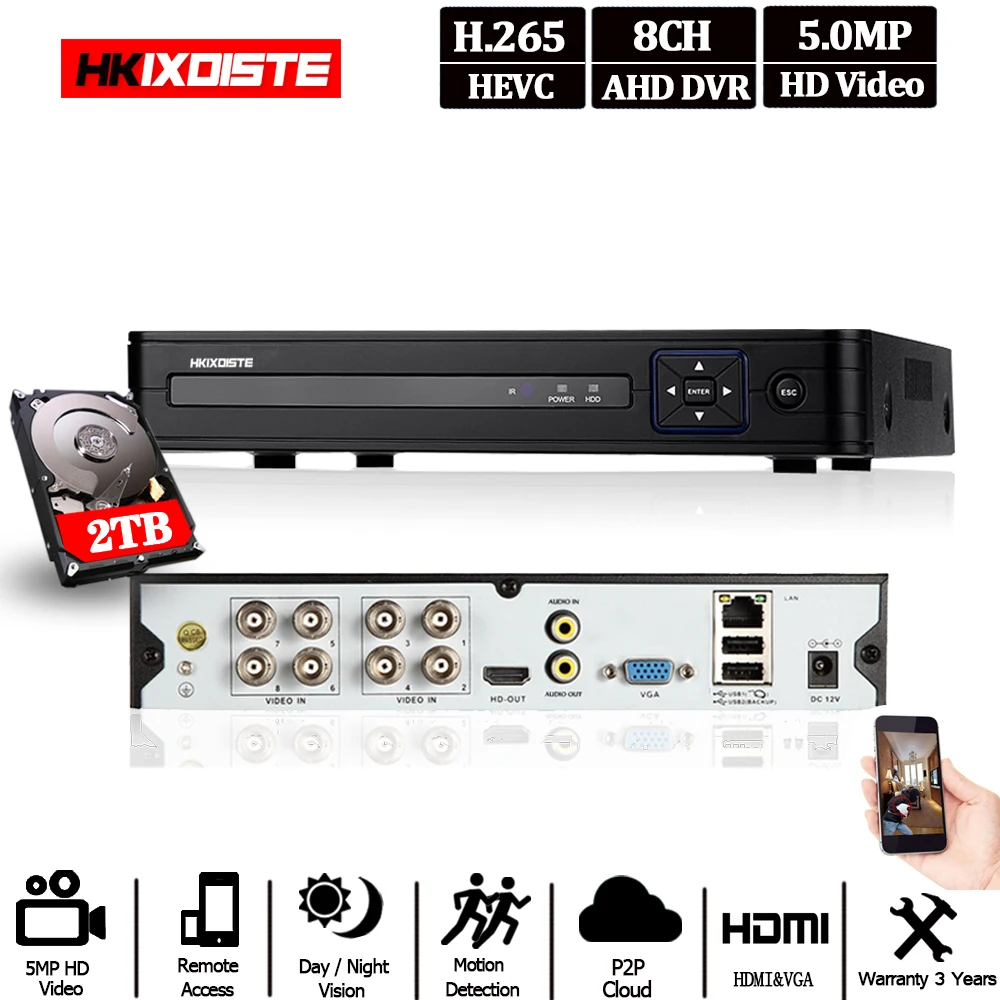 TOP 4CH 8CH 5MP Super HD DVR AHD Digital Audio Video Recorder For 5MP/4MP/1080P Camera POE HDMI ONVIF H